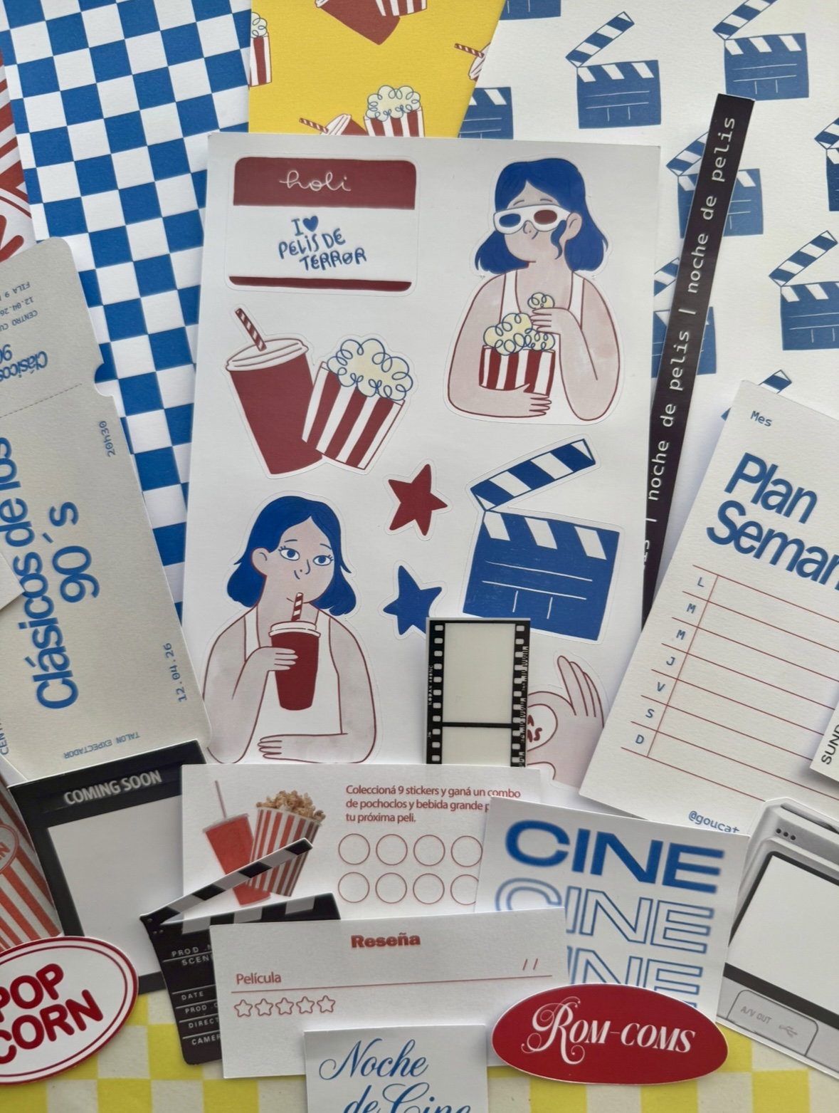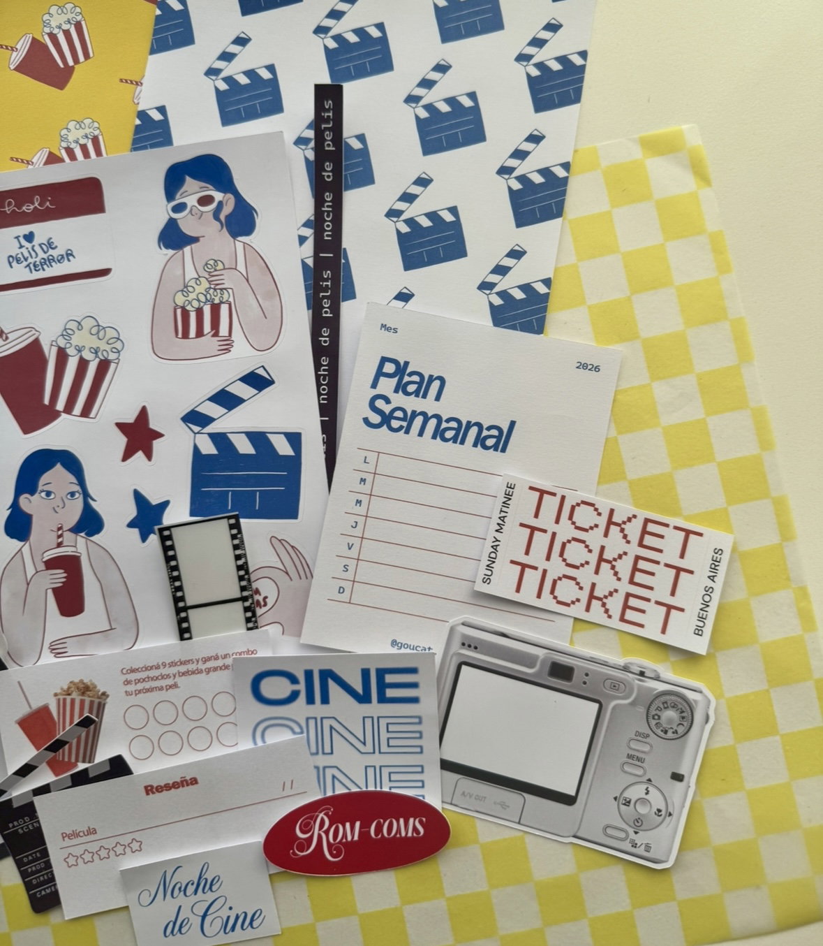 Después del Starter Kit y el de Viajes, llega la edición que todas necesitábamos (aunque no lo supiéramos): el Kit de Cine. Está pensado para que esas entradas que tenés sueltas en un cajón finalmente tengan el lugar que se merecen en tu journal, con toda la impronta de Goucat Studio, obvio.